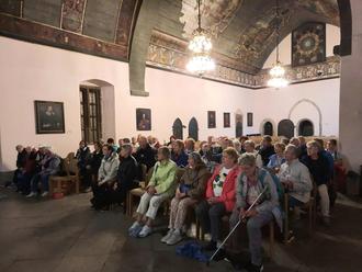 Seit dem frühen 12. Jahrhundert wacht der Normannstein über die Stadt. Die Herren von Treffurt machten eine imposante Burg mit den drei markanten Türmen daraus. Nach knapp 100 Treppenstufen wurden wir mit einer herrlichen Aussicht und einem Schnäppschen belohnt. Gegen 13.00 Uhr wurden wir zur Stadtführung in Mühlhausen erwartet. Aufgeteilt in zwei Gruppen besuchten wir,nun leider bei Dauerregen, die mittelalterliche Reichsstadt : die auf 2,2 km erhaltene historische Wehranlage; die Marienkirche mit dem höchsten Kirchturm Thüringens; die Kornmarktkirche, eine ehemalige Franziskaner-Klosterkirche; vorbei an kleinen Geschäften; und das Rathaus, wo beide Gruppen im ältesten Teil des Rathauses zusammenkamen und einen trockenen Abschluss fanden.