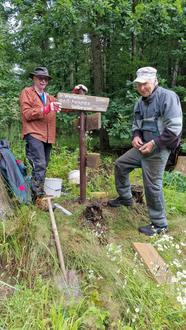 Mauerspechte reparieren weiteren Wanderwegweiser