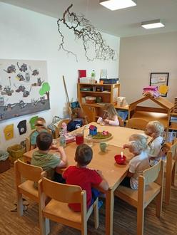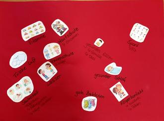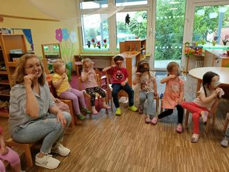 Zum Einstieg wurde in allen Gruppen im Morgenkreis zuerst besprochen, was es bedeutet einen „gesunden Körper“ zu haben. Die Kinder hatten viele Ideen, zum Beispiel eine gesunde Ernährung und Trinken, Bewegung, Schlaf, Körperhygiene oder auch das Spielen mit Freunden und Familie. Auch die Wichtigkeit von Arztbesuchen, Krankheit, Entspannung und die mentale Gesundheit wurde mit den Kindern besprochen. Durch Fingerspiele, Lieder, selbst erstelle Plakate, die Ernährungspyramide oder auch Bilderbücher, gaben die pädagogischen Fachkräften den Kindern die Möglichkeit, das zuvor Besprochene zu verinnerlichen.