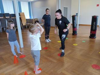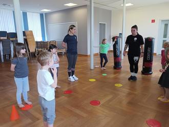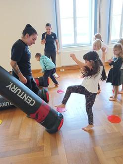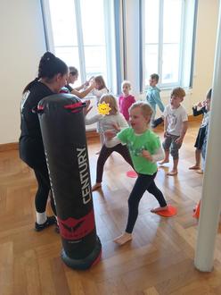 Im Anschluss durften die Kinder kicken und treten an Kinder-Box-Säcken üben.