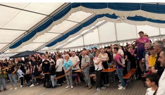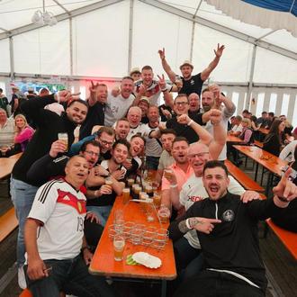 Spätestens mit dem Singen der gemeinsamen Nationalhymne waren Alle im Rausch. Als dann kurz vor Schluss der Ausgleich viel gab es im Festzelt kein Halten mehr.