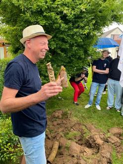 Am Sonntagmittag traf sich das Kirmesteam gemeinsam mit Festwirt Daniel Hess um die vor 19 Jahre vergrabene Kirmesflache zu suchen. Auch der leichte Regen konnte das Team noch abschrecken, mit viel Energie, loszulegen. Nach 30 Minuten wurde man auch fündig. Nicht die Flasche allein kam zum Vorschein, nein auch noch eine Freiheitsstatue. Das hatten auch die Alten Kirmesburschen nicht mehr auf dem Schirm. Damit war die Kirmes eröffnet und wir verbrachten noch einen sehr schönen Tag bis in die Abendstunden. Leider nicht auf dem Backfest, dies wurde wegen Sturmwarnung vom Gesangsverein abgesagt. Aber auf dem Dorfplatz und im Anschluss beim „Carlo“ kam richtig Kirmesstimmung auf.