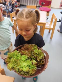 Und schwupps- nach einigen Wochen konnten wir schon Salat und Gemüse ernten.