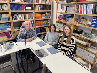 Am Montag, den 16.12.2024 hatte die Lichtenberg-Schule mit Hansgeorg Kling einen Zeitzeugen zur Bombennacht in Kassel zu Besuch. Herr Kling wurde dabei von Raissa Vais (links im Bild) und Lea Reith (rechts im Bild) aus dem Jahrgang 9 für einen Podcast über die Bombennacht in Kassel interviewt. Die beiden Schülerinnen gestalten diesen Podcast, um beim Geschichtswettbewerb des Bundespräsidenten teilzunehmen, der alle zwei Jahre bundesweit stattfindet. Das diesjährige Oberthema des Geschichtswettbewerbes ist „Bis hierhin und nicht weiter?! Grenzen in der Geschichte“ – woraus Raissa und Lea einen Podcast zum Thema „Emotionale Grenzen überwinden – die Kasseler Bombennacht 1944“ ableiteten. Um Erfahrungen aus erster Hand zur Bombennacht zu erhalten, befragten sie Herrn Kling ausgiebig, der zum Zeitpunkt des Angriffes der Alliierten 7 Jahre alt war und im Keller seines Wohnhauses Schutz suchte, als die Bomben fielen.