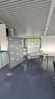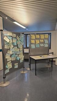 Die Ideen für Maßnahmen wurden auf einer Pinnwand festgehalten und den einzelnen Themenfeldern zugeordnet. Auf dem Vorher und Nachher Bild ist ganz schön zu sehen, dass einige Maßnahmen dabei zusammengekommen sind.