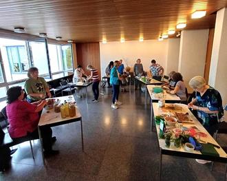 Seit Jahrtausenden nutzen Menschen Pflanzen nicht nur als Nahrung, sondern auch als Heilmittel. Aktuell gewinnen natürliche Alternativen zu chemischen Arzneimitteln eine immer größere Bedeutung. Das interessante Thema weckte in uns den Wunsch, sich näher damit zu beschäftigen. Unter der fachkundigen Anleitung der Heilpraktikerin Dagmar Henschke-Seibert aus Guntershausen wurde an sieben Stationen fleißig gewerkelt. So entstanden Zitronenmelisse- Lippenbalsam, Holunderblüten-Oxymel, Rosmarin-Rotwein-Salz zum Würzen und als Badezusatz, Gänseblümchensirup, Spitzwegerichsalbe und leckere Dattelherzen mit essbaren Wildkräutern. Unser besonderer Dank gilt der Referentin für ihren Einsatz. Daggi hatte bereits im Vorfeld Kräuter gesammelt und so weit vorbereitet, dass wir in wenigen Stunden die unterschiedlichen Rezepte fertigstellen und von allem etwas mit nach Hause nehmen konnten. Diese Veranstaltung war etwas ganz Besonderes und wir sind uns einig darüber, dass das Thema noch längst nicht für uns erledigt ist.