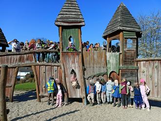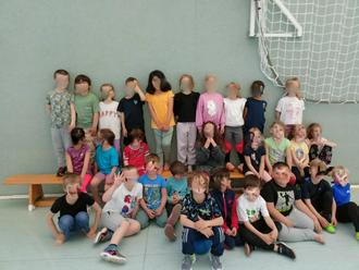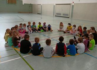 Für donnerstags haben sich die Kinder eigenständig in zwei Gruppen aufgeteilt. Im wöchentlichen Wechsel gab es für jeweils eine Gruppe eine Sportaktion in der Kita, die andere Gruppe besuchte für zwei Schulstunden die Grundschule und hatte die Gelegenheit ganz spielerisch den Schulalltag und alle Räumlichkeiten kennenzulernen. Im Anschluss gab es auch für diese Kinder die Sportaktion in der Kita.
