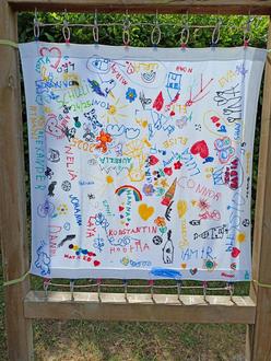 Natürlich durfte eine Übernachtung in der Kita und ein Abschlussfest nicht fehlen. Bei diesem Fest gestalteten alle gemeinsam ein schönes Wimmelbild für den Kitagarten.