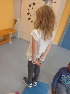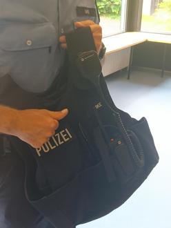 Ganz besonders wurde die Weste inszeniert. Das Taschenmesser und die Taschenlampe fehlten dabei nicht. Der Gürtel mit Schlagstock und Pistole bekam ebenfalls die volle Aufmerksamkeit der Kinder. Als Nächstes waren die Handschellen der Mittelpunkt. Alle Kinder testeten diese ausgiebig. Die Begeisterung in den Kinderaugen konnte man sehen.