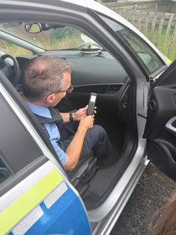 Die einzelnen Teile der Ausrüstung wurden erklärt, geprüft und zum Teil ausprobiert. Die Funktion des Blaulichtes und Stop - die Polizei, BITTE FOLGEN, fehlten nicht. Gerade in diesem Augenblick wurde ein Unfall über Funk gemeldet. Von Herrn Imke hörten wir die einzelnen Abläufe, welche einer bestimmten Reihenfolge zu zuordnen sind. Wann entschieden wird, ob ein Krankenwagen zur Unfallstelle geschickt wird, oder die Feuerwehr. Auch der Abschleppdienst ist wichtig. Zum Schluss die Meldung ans Radio. Diese Informationen über die Länge eines Staues, Vollsperrung und die empfohlene Umleitung benötigen die Autofahrer.