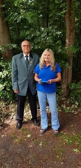 Renate Günther mit Siegerpokal Mannschaft und Kreisschützenmeister J. Kuhn
