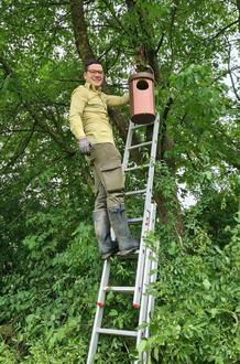 Das Bild zeigt den Vorsitzenden Thies Kessler des Verein zum Erhalt und Förderung der Dorfstruktur e.V. bei dem Aufhängen der Nisthöhlen. Das Foto ist von dem Vorstandsmitglied Johannes Reich fotografiert. Thies Kessler ist auch aktives Vorstandsmitglied der Jagdgenossenschaft Dennhausen/Dittershausen.