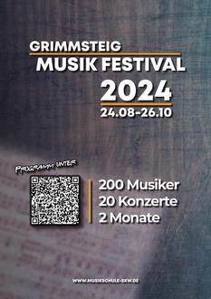 Auch in diesem Jahr findet ab dem 24.08. das im letzten Jahr so erfolgreich gestartete GrimmsteigMUSIKfestival statt - wieder mit einem fantastisch abwechslungsreichen und bunten musikalischen Programm. Der QR- Code leitet sie direkt auf die Homepage der Musikschule Söhre- Kaufunger Wald, wo das komplette Programm zum Download bereit steht.