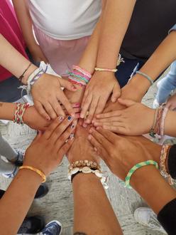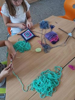Basteleinheiten wie das Bauen eines kleinen Boho-Mobilees und das Knüpfen verschiedener Arten von kunterbunten Freundschaftsarmbändern wurden von den Kindern selbst im Laufe der Woche mitmodifiziert und das Angebot durch das Weben von Indianeraugen ergänzt.