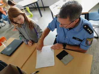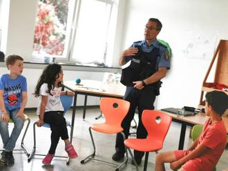 Am Mittwoch bekamen wir Besuch von der Polizei und der Schutzmann vor Ort Herr Markus Imke nahm sich eine Menge Zeit für die Gruppe, die in 2 Hälften nacheinander aufgeteilt umfangreiche Einblicke in die erstaunliche Ausrüstung und verschiedenste Arbeitsmaterialien der Polizei erhalten konnte. In einer großen Gesprächsrunde wurden viele wichtige und interessante Themen besprochen, die die Polizeiarbeit selbst, aber auch Menschen in Notsituationen und richtiges Verhalten in Notfällen beinhalteten. Die Kinder kamen aus dem Fragen gar nicht mehr heraus und als dann auch noch von jedem Fingerabdrücke genommen wurden, war die Spannung auf ihrem Höhepunkt angekommen.