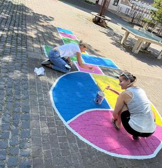 Passend zum Schulstart strahlte der Schulhof wieder mit neuen Bildern. Jetzt kann wieder gehüpft werden!