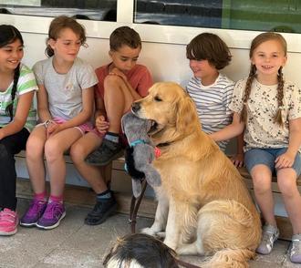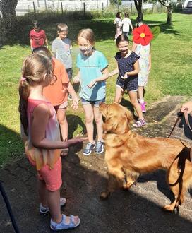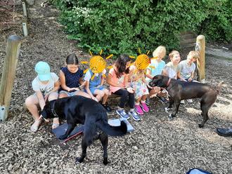 Am Dienstag, den 30. Juli herrscht helle Aufregung in der Sommerferienbetreuung. Die Kinder können es kaum erwarten, dass das Frühstück vorbei ist. Denn dann bekommen wir Besuch: die Hundestaffel des Deutschen roten Kreuz aus Kassel kommt in die Hermann Schafft Schule. Staffelleiterin Michaela bringt 5 Kolleg*innen und 7 Hunde mit.