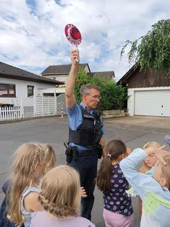 Polizist Markus Imke kam vorbei, um mit uns Vorschulkindern über das Thema „Sicher im Straßenverkehr“ zu sprechen.