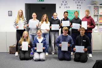 In der vergangenen Woche erhielten 8 Schülerinnen und Schüler der 10. Klasse ihre Cambridge-Zertifikate. Die Prüfung dazu wurde von ihnen bereits vor den Sommerferien, noch in der Jahrgangsstufe 9, abgelegt. Als Vorbereitung nahmen sie ein halbes Jahr lang an einem Vorbereitungskurs an der Lichtenberg-Schule teil.