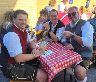 Am Samstag wurde das Knödelfest um 11 Uhr mit einem Festumzug rund um den Marktplatz eröffnet. Musikkapellen aus St. Johann und aus Bergen, Norwegen sorgten für musikalische Begleitung. Der Umzug umfasste neben den Musikkapellen ca. 20 Festwirte und Ehrengäste. Der Einmarsch wurde von Bürgermeister Stefan Seiwald angeführt. Bürgermeister Andreas Damm wurde dabei eine besondere Ehre zuteil: er durfte den Einmarsch an der Seite von BGM Seiwald begleiten. Nach diesem wunderbaren Auftakt konnte man auf der Bühne vor der Kirche traditionelle Schuhplattler bestaunen. Die Kindertrachtengruppe führte Volkstänze auf, gefolgt von einem Paartanz in österreichischer Tracht. Einen Steinwurf weiter gab es Livemusik auf der Hauptbühne des Marktplatzes. Bei strahlendem Sonnenschein war dieser gut gefüllt. Die Feststraße zog sich durch die komplette Innenstadt bis über den Marktplatzring. Acht verschiedene Live-Bands und DJ`s entlang der Festmeile sorgten gleichzeitig für gute Stimmung. Der längste Knödeltisch der Welt von sage und schreibe 595 Metern Länge hangelte sich durch die Straßen und jeder fand ein Plätzchen. Von Käseknödel über Salami- oder Spinatknödel bis hin zu Kirsch-Schoko oder Eis-Marillenknödel gab es alles, was das Herz begehrte. Bei 27 verschiedenen Knödelsorten und ca. 26.000 verkauften Knödeln, war für jeden etwas dabei. Ca. 12.000 Besucher waren an diesem Tag unterwegs und ließen sich das heimische Huberbier sowie den Federweißer alias gespritzter Sturm schmecken.