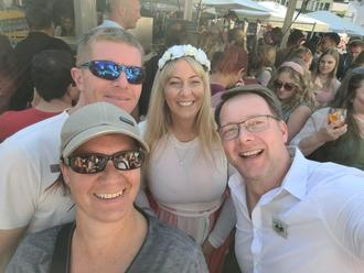 Der Sonntag startete mit viel Sonnenschein. Genauso sonnig war die Stimmung der vielen Gäste beim Frühschoppen auf dem Marktplatz. Schlagersänger Marc Pircher holte das Publikum gut ab und sorgte für Stimmung. Es wurde viel geschunkelt, gesungen und gelacht. Nach 3 Stunden Konzert neigte sich das Festwochenende mit Knödeltisch dem Ende zu. Uns hat es prima gefallen und alle waren sich einig: nächstes Jahr kommen wir wieder! Wenn es heißt: 43. Knödelfest 2025 in St. Johann, Tirol!