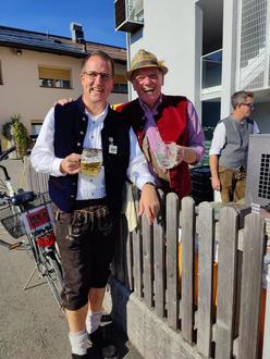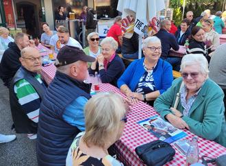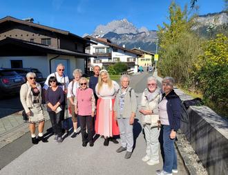 Die Seniorenfahrt der Gemeinde Fuldabrück besuchte auch dieses Jahr, passend zu unserem Jubiläum von 45 Jahren Partnerschaft, das 42. Knödelfest unserer Partnerschaftsgemeinde St. Johann in Tirol. Wir starteten Freitag mit einem Besuch auf dem Wochenmarkt von St. Johann. Die Stände auf dem Marktplatz luden mit Ihren regionalen Lebensmitteln und Handwerksarbeiten, bis hin zu Dekoration und Blumen zum Bummeln und Klüngeln ein. Gleichzeitig wanderten einige TeilnehmerInnen der Seniorenfahrt von der Mittelstation der Harschbichlbahn hinauf zur Angereralm. Dort wurde ganz traditionell das Knödelwochenende mit dem Almererfest eingeläutet. Die Stimmung war genau wie das Wetter hervorragend. Und die Alm, sowie ihre Terrasse mit der wunderschönen Aussicht, sehr gut gefüllt.