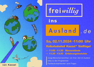 Informationen zu Auslandsaufenthalten erhalten interessierte junge Menschen bei der Informationsveranstaltung „Freiwillig ins Ausland“ am Samstag, den 02.11.2024 im Südflügel des Kasseler Kulturbahnhofs. Dort gibt es Informationen für Jugendliche und junge Erwachsene, die mit dem Gedanken spielen für eine bestimmte Zeit ins Ausland zu gehen, um dort ein Praktikum zu machen, zu arbeiten und zu reisen, ein Schuljahr zu verbringen oder sich in sozialen Projekten zu engagieren. Ausrichter der Veranstaltung sind verschiedene Institutionen aus der Stadt und dem Landkreis Kassel, die solche Auslandsaufenthalte vermitteln, organisieren und begleiten.