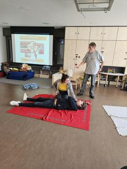 Am Samstag, 21.09.2024 war es für einige ErzieherInnen aus allen 3 Kitas der Gemeinde wieder soweit. In regelmäßigen Abständen nehmen wir an einem „Erste Hilfe Kurs am Kind“ teil. Dieser Kurs wurde von Fred Zwick geleitet, der vom Roten Kreuz kam. Speziell wurden an diesem Tag erste Hilfe Maßnahmen für die Altersstufe 1-6 Jahren besprochen und durchgeführt.