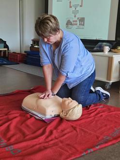 Um alle Beteiligten zu schulen, aber auch auf evtl. Unfallsituationen vorbereitet zu sein und sich sicher zu fühlen, haben wir alle wichtigen Themen angesprochen und geübt. Wir haben unter anderem Schnittwunden, Verschlucken, die Erstversorgung, Überprüfung der Vitalfunktion, stabile Seitenlage bis hin zur Reanimation geübt. Vielen Dank für den lehrreichen und nachhaltigen Tag, den Fred Zwick mit uns in der Kita verbracht hat, um uns auf den neusten Stand zu bringen, damit alle Kinder in der Kita im Ernstfall super versorgt sind.