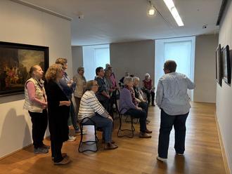 Die Erklärungen zu dem Gemälde „Leda mit dem Schwan“ von Rizzoli, Giovanni Pietro und die Verbindung zu dem Sternenbild „Zwilling“ und das Werk „die Kartenspieler „von Godfried Schalcken „ welches über 200 Jahre als verschollen galt, sowie „Das Bohnenfest“ von Jan Steen machte die Führung kurzweilig. Außerdem konnten wir auch die aktuelle Sonderausstellung „Was habt ihr da! Weil Sammeln Freude macht“ von Gartenzwergen bis Zebrastreifen in ihren Schaukästen betrachten. Im Anschluss wurde im Café Jerome noch lebhaft geschnuddelt.