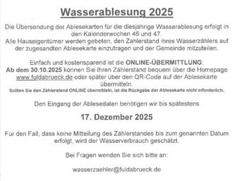 www.fuldabrueck.de oder später über den QR-Code auf Ablesekarte