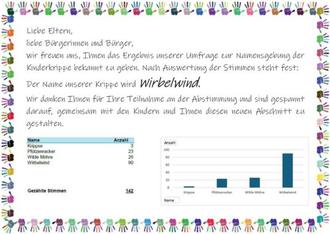 Kinderkrippe bekannt zu geben. Nach Auswertung der Stimmen steht fest: