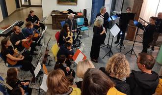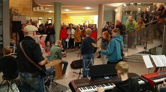 Die Eröffnung des Abends machte die Band „No Kidding“ im Foyer des Rathauses, Erdgeschoss. Danach konnten die BesucherInnen abwechselnd auf der 1. Und 2. Etage verschiedenen Ensembles lauschen. Das Angebot war breit gefächert: von einem Flötenquartett über ein Erwachsenenensemble „die Chillharmonika“ bis hin zur Gitarrengruppe „Saitensprünge“ war für jeden etwas dabei. Der Abschluss fand dann wieder im Foyer, Erdgeschoss statt. Die Stimmung war sehr positiv und man schaute bei den MusikerInnen sowie den BesucherInnen in viele zufriedene Gesichter. Das 13. Rathauskonzert war nicht nur herausragend gut besucht, sondern auch ein voller Erfolg.