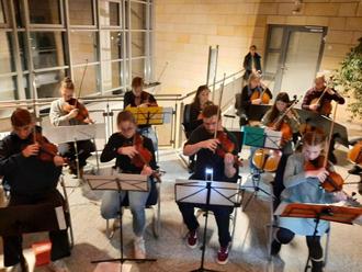 Der stellv. Schulleiter der Musikschule Söhre-Kaufunger Wald, Herr Hoffmann, schloss sich den Begrüßungsworten an. Er bedankte sich ebenfalls bei allen Mitwirkenden und erörterte den Ablauf des Abends für die Gäste: Die Ensembles spielen Nacheinander auf den unterschiedlichen Ebenen. Die Besucher haben somit die Möglichkeit, von Etage zu Etage zu gehen oder, dank der offenen Bauweise des Rathauses, auch von einem festen Standort aus die Musik erleben und genießen zu können.