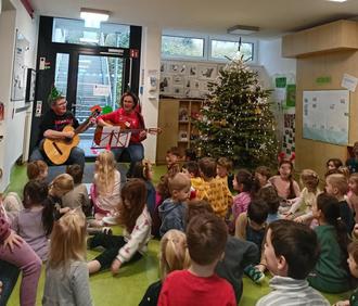 Anschließend trafen sich alle Kinder im Flur vor dem Weihnachtsbaum, um gemeinsam zu singen. Schon bald war Gesang im ganzen Haus zu hören.