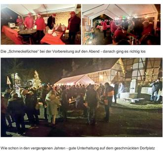 Am Freitag haben wir den Dorfplatz festlich geschmückt und konnten so Euren Besuch erwarten. Schon nach kurzer Zeit hatte sich der Dorfplatz mit weit über hundert Besuchern sehr gut gefüllt. Bei dem Verzehr von Grünkohl und Schmalzenbroten sowie roten/weißen und alkoholfreien Glühwein (es gab auch Bierchen) ergaben sich wieder viele gute Gespräche.