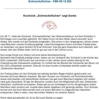 Am 28.11. hatte der Kochclub „Schmeckefüchse“ den Weihnachtsbaum auf dem Dorfplatz in