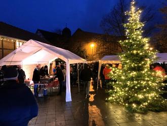 Doch schon ein paar Stunden später sah man nur noch in sehr geschäftige und vor allem zufriedene Gesichter fast aller Beteiligten. Der Adventsmarkt erfreute sich einer großen Besucherzahl, das Wetter blieb einigermaßen stabil und selbst der später einsetzende Regen konnte dank der aufgestellten großen Zelte die vielen Gäste nicht vertreiben. Mit der festlichen Beleuchtung und den knisternden Holzscheiten in den Feuerschalen wurde es ja jetzt auch erst richtig gemütlich.