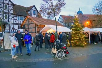Der Adventsmarkt war sehr gut besucht und setzte den Dorfplatz und das Waltersche Häuschen in Szene. Foto: Heinz Waldeck