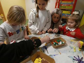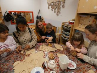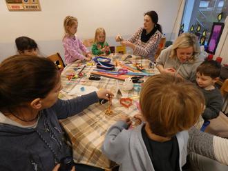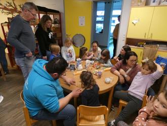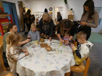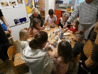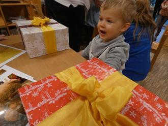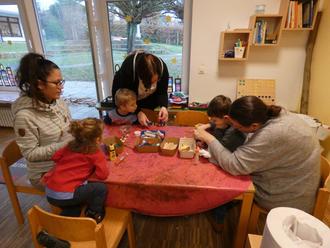 Zahlreiche Bastelaktionen luden die Kinder und deren Eltern, Omas und Opas dazu ein, mitzumachen. Der im Eingangsbereich stehende Weihachtsbaum wurde anschließend mit den schön anzusehenden Bastelprodukten geschmückt: Papierketten und -herzen, Wabenbälle aus Filtertüten oder Anhänger in Dreiecksform, die mit allerlei Glitzer und Sternen verziert wurden. Der Kreativität waren keine Grenzen gesetzt. Eine Riech- und Fühlstation bot den Kindern neben dem Basteln noch einen weiteren Zugang zum Thema „Weihnachten“. Viele Kinder konnten die für diese Zeit charakteristischen Düfte wie Zimt oder Vanille herausriechen und in Boxen versteckte Gegenstände ertasten.