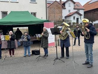 Der ev. Posauenchor eröffnet mit Weihnachtsmusik den 3. Dörnhagener Adventmarkt.