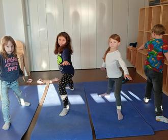 In der zweiten Woche war unser Thema „Aktiv sein“. Wir begannen die Woche mit einer guten Stunde Kraft-Ausdauer Sport. Dazu lief auch gute Musik. Am nächsten Tag haben wir uns Popcorn gemacht und einen Film angeschaut. Am Mittwoch war es bei unserer Winterwanderung super kalt, aber die Sonne hat toll geschienen und wir sind durch Bergshausen gewandert. Unser Ziel war der Röthespielplatz. Im Anschluss haben wir uns einen leckeren Kakao gekocht. Am Donnerstag war unser Entspannungstag. Wir haben Yoga gemacht. Das Achtsamkeitstraining war entspannend und auch ein wenig lustig. Zum Abschluss der Woche gab es eine Party. Wir durften uns Schnucketüten machen, haben Musik gehört, getanzt und viele Spiele gespielt. Das waren tolle Ferienspiele!“