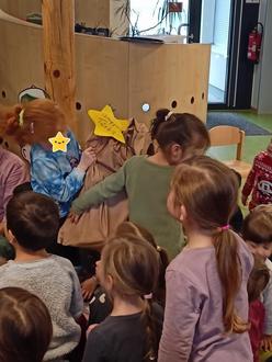 Plötzlich kam ein Wichtel die Treppe herunter. Die Überraschung bei den Kindern war riesengroß!!