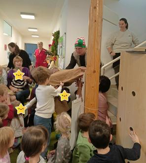 Nachdem alle gemeinsam ein Lied für den Wichtel gesungen hatten, bekam jede Gruppe ihren Geschenkesack überreicht. Da war die Freude bei allen Kindern natürlich groß.
