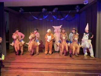 Selbst die mit vier Jahren Allerjüngsten zeigten keine Scheu, sich auf der Bühne zu präsentieren. In neuen farbenprächtigen Kostümen zeigten die Fulle Zwerge, Fulle Küken, Fulle Hühner, Fulle Angels und die Crazy Fulle Dancers ihr Können und begeisterten ihr Publikum im vollbesetzten Bürgerhaus. Leonie Damm, unser Tanzmariechen, überzeugte mit einem sehr gelungenen Auftritt und erntete großen Applaus. Die Marschtanzformation der Fullegarde wusste mit neuem Outfit und gelungener Choreographie zu überzeugen. Bürgermeister Andreas Damm informierte als Rathausschreier über Dorfangelegenheiten und ließ sich auch nicht davon beirren, dass das Mikrofon ausfiel. Im Publikum fanden sich bemerkenswert viele Cowboys und boten die passende Kulisse für seinen zweiten Auftritt mit den Fulle Daddys, die diesmal als Cowboys mit Pferden die Bühne rockten.