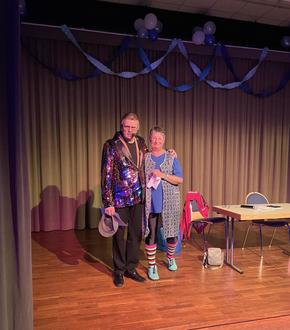 Beim Seniorenkarneval am Sonntag führten Nadine Woelk und Andreas Damm für den kurzfristig erkrankten Vorsitzenden souverän durch das Programm. Hartmut Meyer übernahm von Gerhard die Figur des „Schorsche“ im Sketch Renter Dasein und glänzte mit seiner Bühnenerfahrung. Angelika Eberlein-Fleck komplettierte das Programm als Nachwächterin, die von Ortsteil zu Ortsteil ging und dabei das begeisterte Publikum wunderbar in ihren Vortrag interaktiv einbaute.
