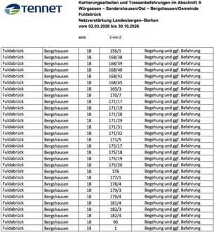 TenneT führt im Rahmen des Genehmigungsverfahrens zur Verstärkung und Sanierung der bestehenden 380-kV-Leitung Trassenbefahrungen und Tätigkeiten zur Beobachtung und Erfassung von Landschafts- und Artengruppen und zur Beurteilung der Lebensräume hinsichtlich ihrer Bedeutung für den Naturhaushalt und Artenschutz (Kartierungsarbeiten) durch.