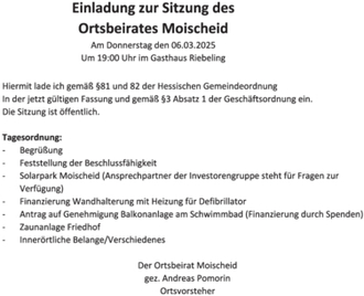 Hiermit lade ich gemäß §81 und 82 der Hessischen Gemeindeordnung