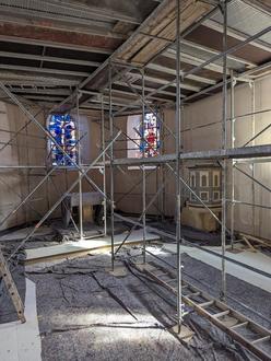 Kirche Gilserberg am 12.03.2024: Die Innenrenovierung läuft auf Hochtouren.