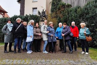 Sachsenhäuser Landfrauen vor dem Denkmal des Heiligen Martin